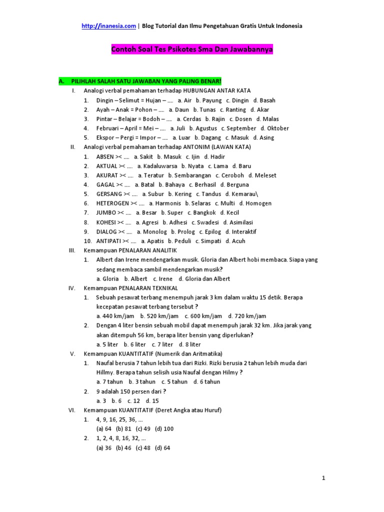 Tes psikotes sma adalah tes yang biasanya rutin dilakukan oleh sma sma favorit pada saat penerimaan peserta didik baru. We did not find results for: Untuk mengatasi hal tersebut maka pembaca bisa membaca panduan di atas sebab penjelasannya sangat lengkap dan komplit. Tes penalaran analitis tes penalaran logika tes ketelitian tes army alpha tes kode ingatan tes kraepelin dan tes pauli. 2010 spk penentuan jurusan sma (ipa/ips/bahasa) sistem ini dapat memfasilitasi siswa/siswi sma kelas x (kelas 1 sma) dalam penjurusan bidang minatnya.